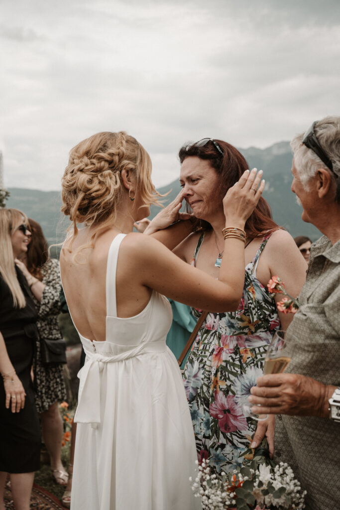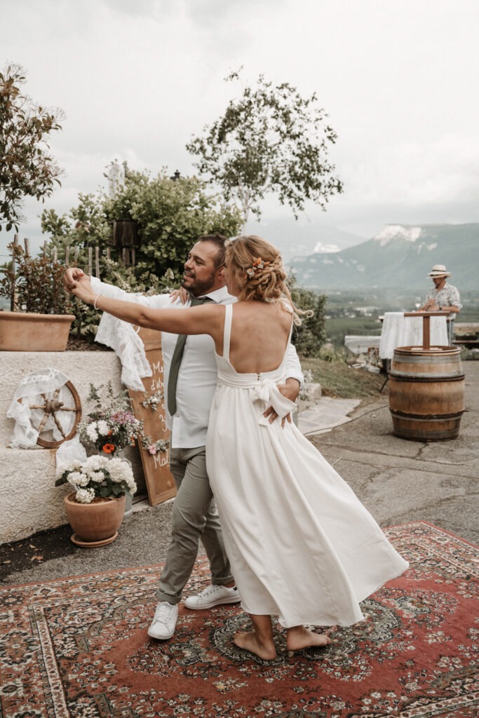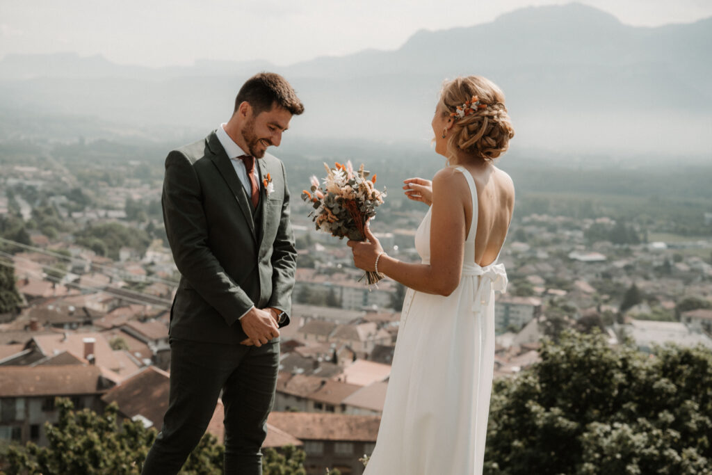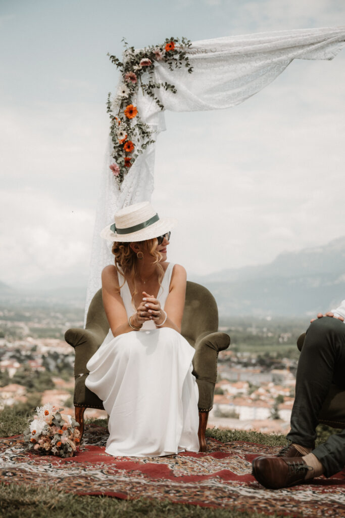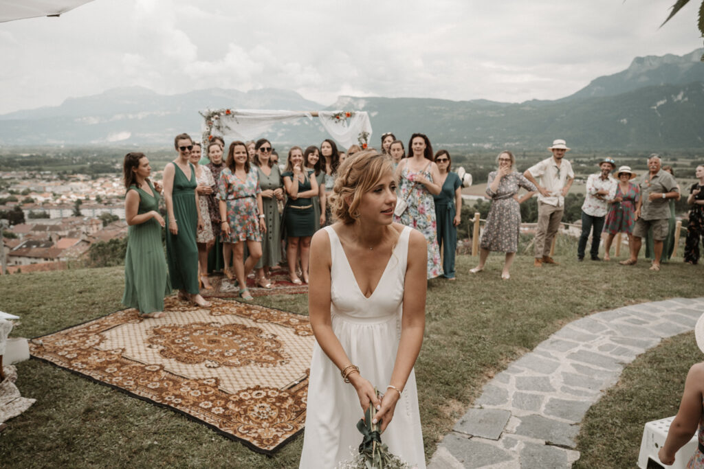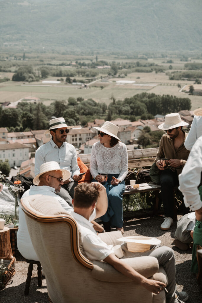 The symbolic ceremony took place around 4 p.m., under radiant sunshine and with a breathtaking view of the Vercors cliffs as a backdrop. It was both an emotional and beautiful moment, as Mathilde and Stéphane declared their love for one another, surrounded by friends and family. The simplicity of the ceremony added to its charm, placing heartfelt emotions at the centre rather than formal traditions.