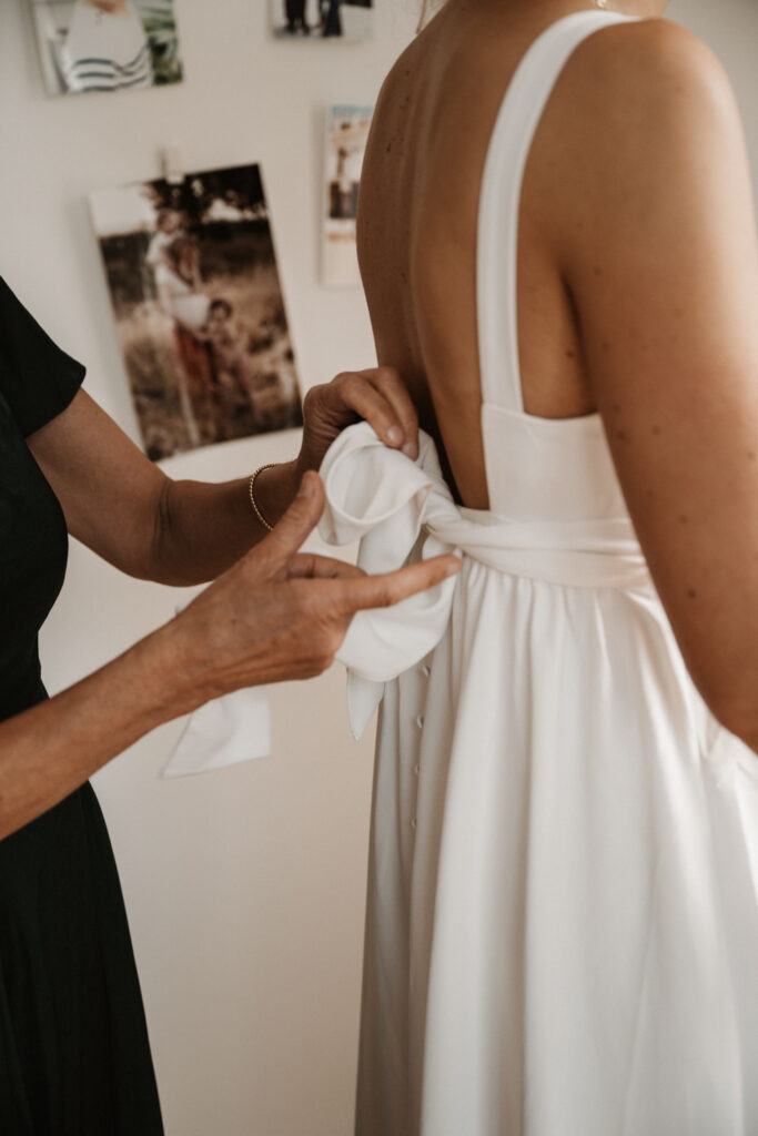 The day began peacefully at Mathilde and Stéphane’s home, with the wedding preparations underway. The couple was surrounded by their loved ones and their children, adding a touch of tenderness and authenticity to every moment. The atmosphere was relaxed, laughter filled the air, and excitement grew as the big moment approached. There was only one lingering concern: would it rain?