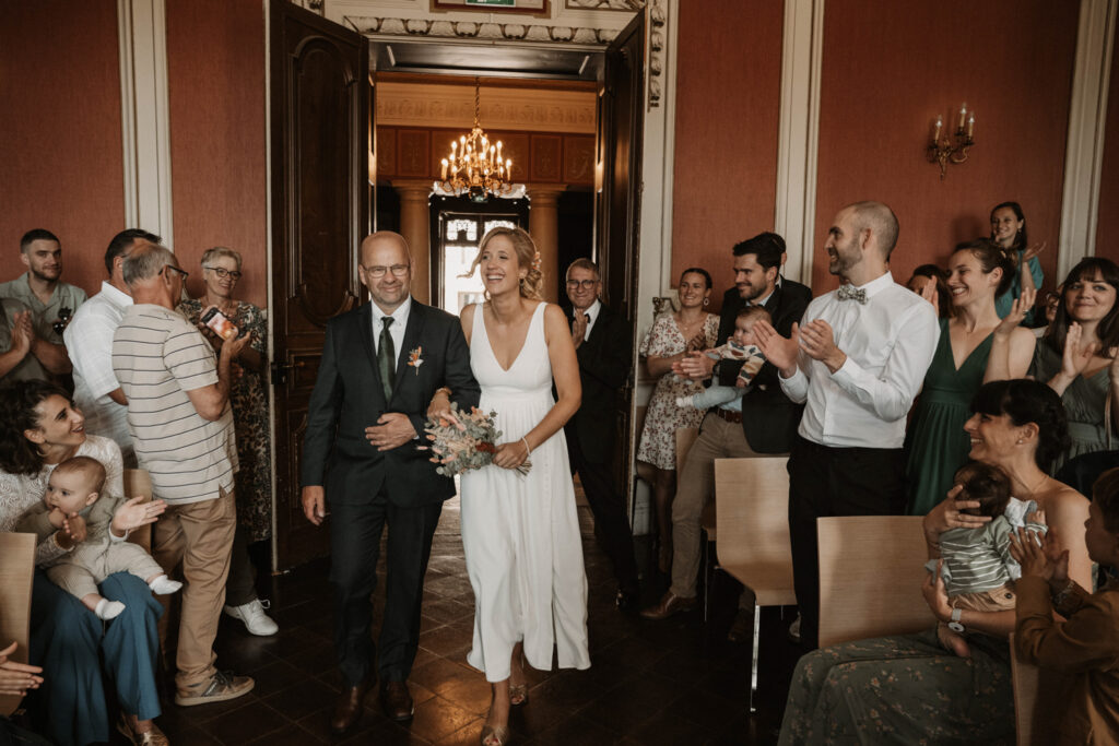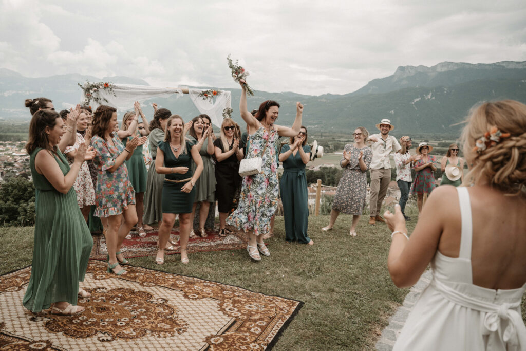 There was, however, one constant source of stress throughout this memorable day: the weather. With no real backup plan in case of rain, Mathilde and Stéphane were hoping with all their hearts that the weather would be on their side. The day before the wedding, a storm had hit, with heavy rain even falling late in the afternoon. Thankfully, the wedding day itself was bathed in sunshine, bringing a collective sense of relief to all the guests.