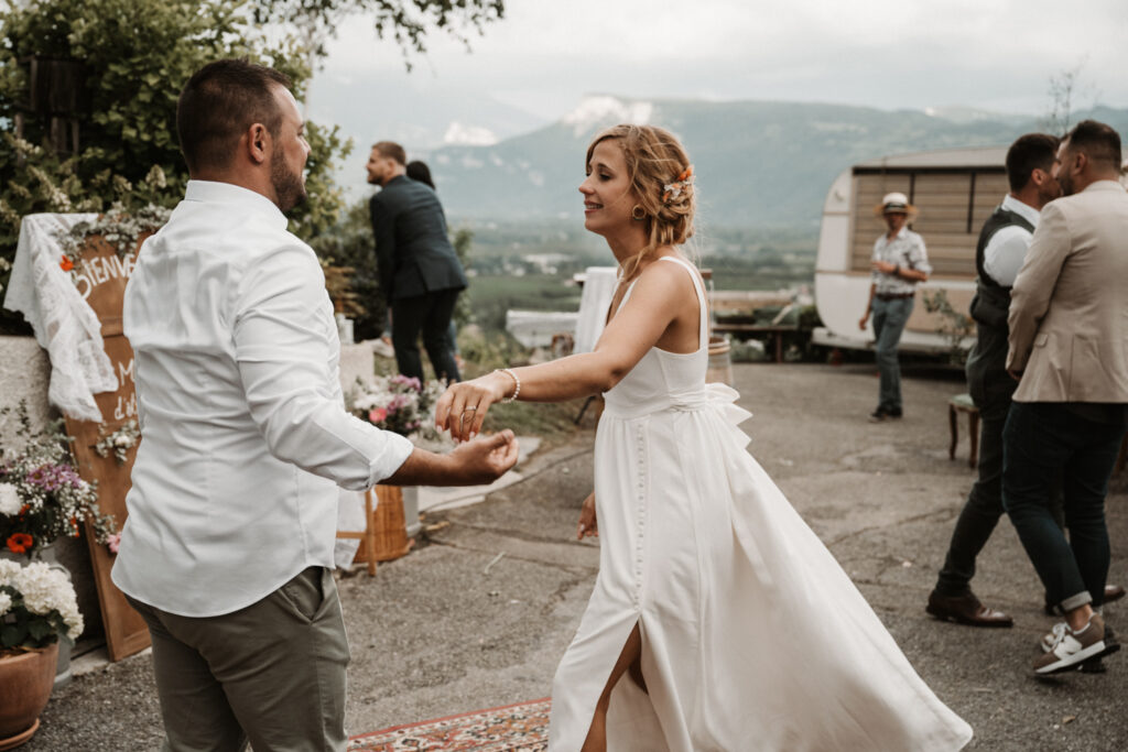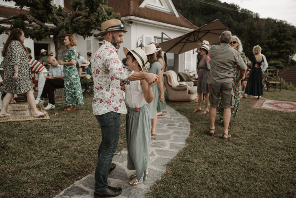 After the ceremony, the afternoon unfolded in an atmosphere of joy and spontaneity. Children played together, adults danced to the music, and all the guests enjoyed the relaxed and welcoming vibe. It was a wedding where love and connection took centre stage, where everyone felt free to be themselves and share precious moments with the couple.