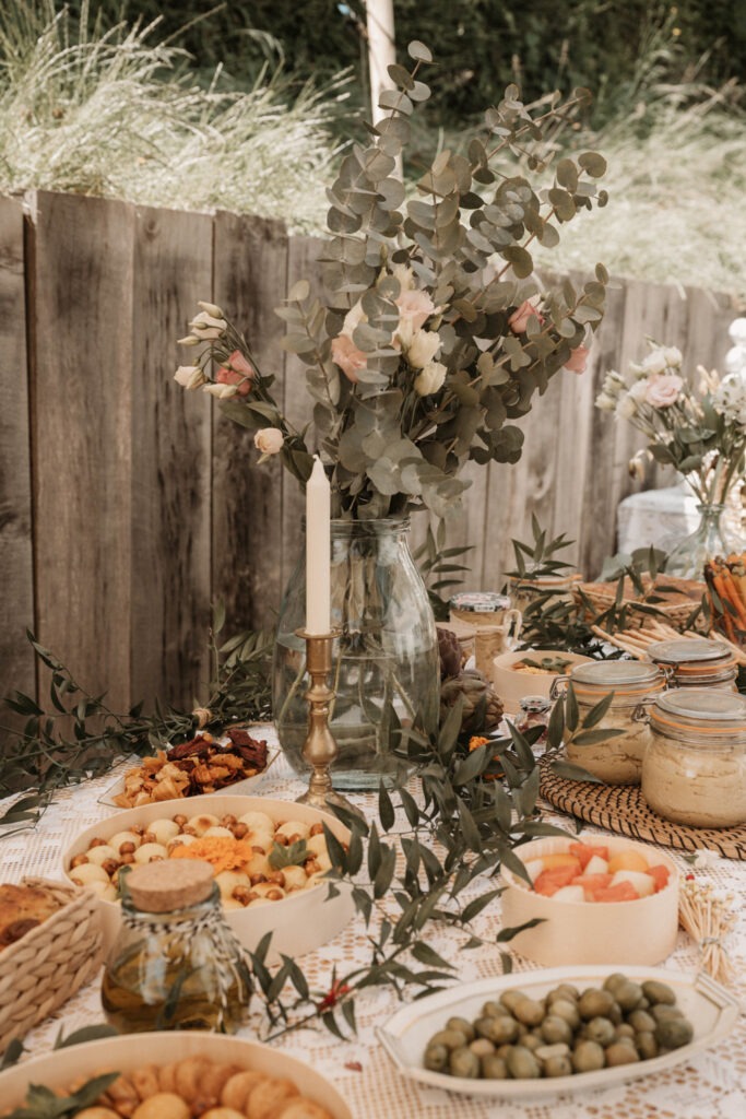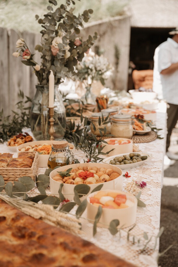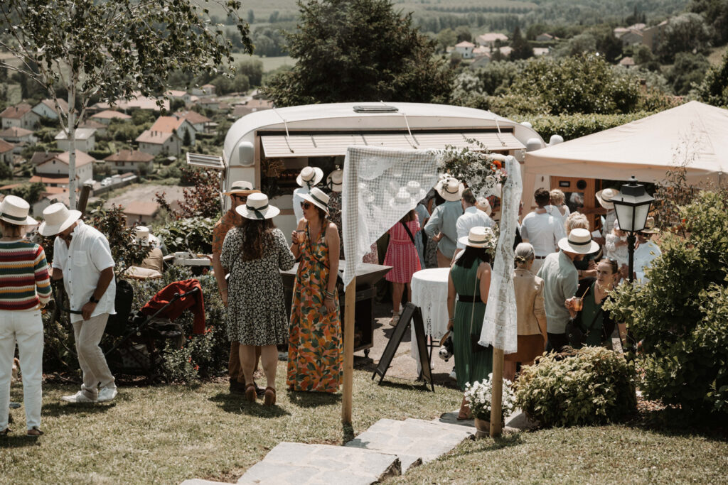 After the civil ceremony, Mathilde, Stéphane and their guests returned home for a beautiful cocktail reception prepared by La Caravane à Cocktail. A refined selection of cocktails was served to celebrate this memorable day. Guests enjoyed delicious food, from plancha grills to buffet-style dishes, while sharing lively conversations and bursts of laughter.